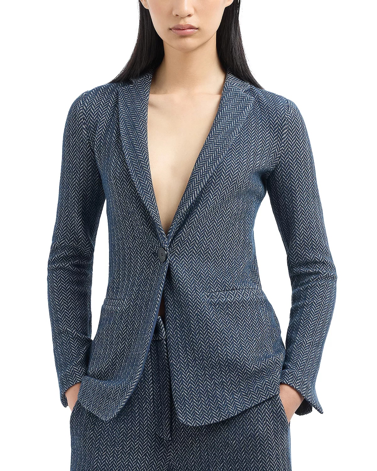 SINGLE-BREASTED BLAZER CHEVRON-MOTIF JERSEY