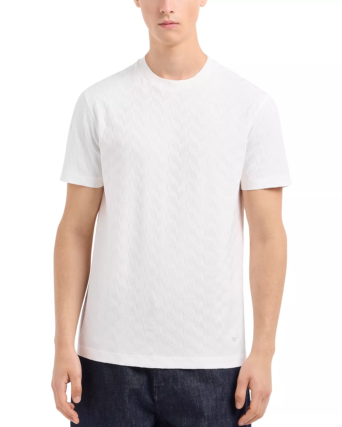 SIZE & FIT - Fits true to size, order your normal size - Designed for a regular fit - Model measurements: 6'2" height, wearing a size medium PRODUCT DETAILS - Crewneck - Short sleeves - Allover chevron jacquard motif - Imported Web ID: 5151304 MATERIAL & CARE - 100% cotton - Machine wash