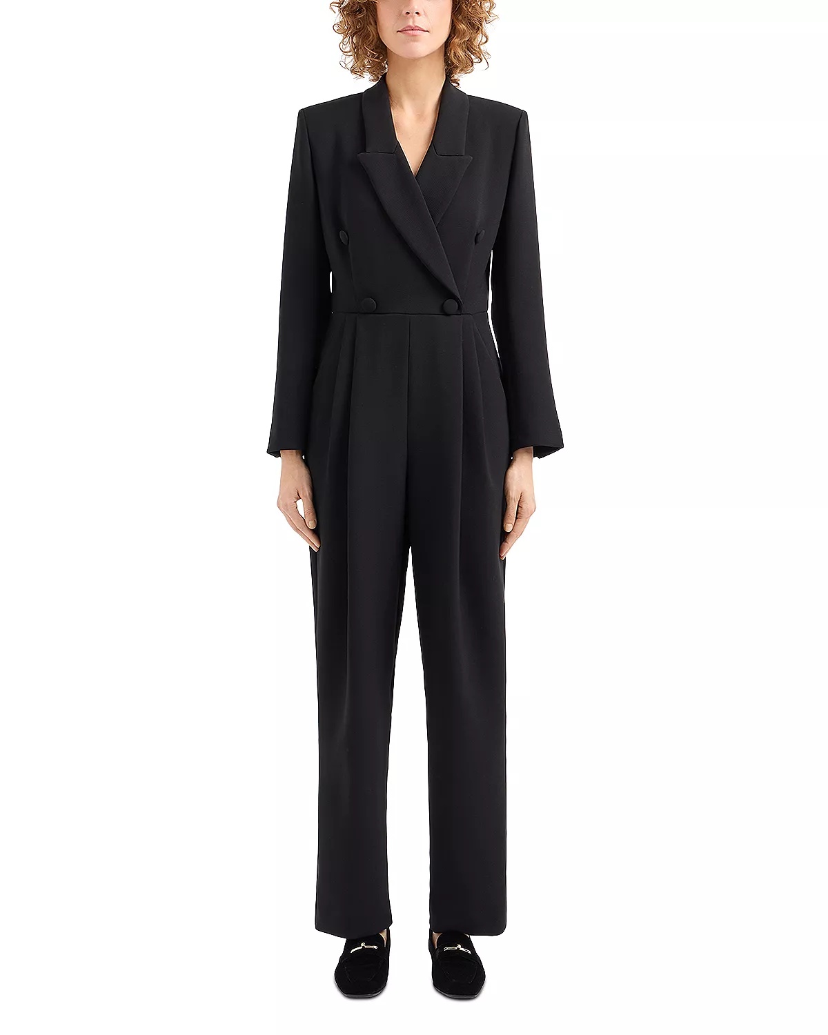 SIZE & FIT - Fits true to size, order your normal size - Model measurements: 5'10" height, 33.5" bust, 23.5" waist, 34.5" hips, wearing a size IT 38 PRODUCT DETAILS - Peak lapels - Back zip closure - Long sleeves, three-button cuffs - Double-breasted buttons at front waist - On-seam hip pockets - Pleated front yoke - Tech crepe fabric - Imported Web ID: 5176805 MATERIAL & CARE - Main: 50% acetate/50% polyester; secondary: 100% polyester - Dry clean