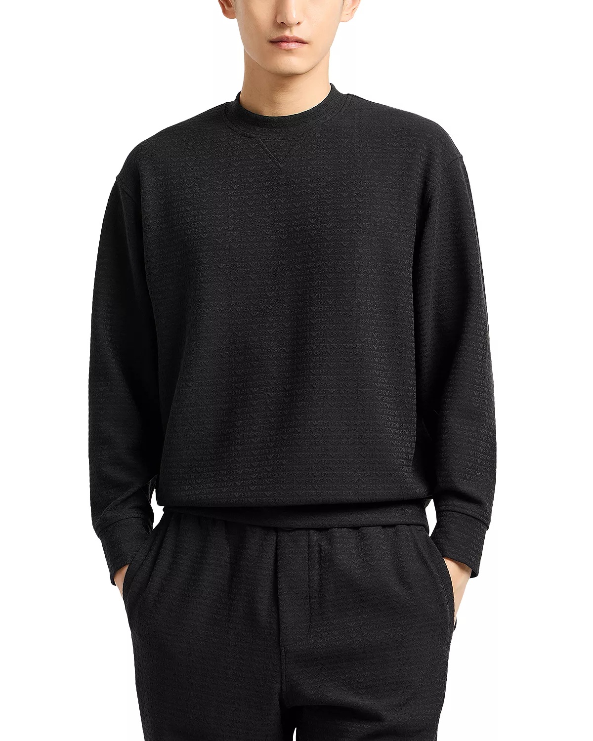 SIZE & FIT - Fits true to size, order your normal size - Designed for a regular fit - Model measurements: 6'2", wearing a size medium PRODUCT DETAILS - Crewneck - Long sleeves - Allover jacquard logo pattern - Pullover style - Imported Web ID: 5384215 MATERIAL & CARE - 46% cotton/46% lyocell/8% elastane; inner fabric: 92% polyester/8% elastane - Machine wash