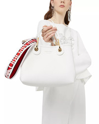 PRODUCT DETAILS - Removable top handles - Removable webbing strap with logo - Dimensions: 10.25"W x 8"H x 4"D - Magnetic snap closure - One interior removable zip pouch - Gold-tone hardware, luggage tag & foil-printed logo - Mannequin model measurements: 5'10" height, wearing a size 4 or small - Imported Web ID: 4109265