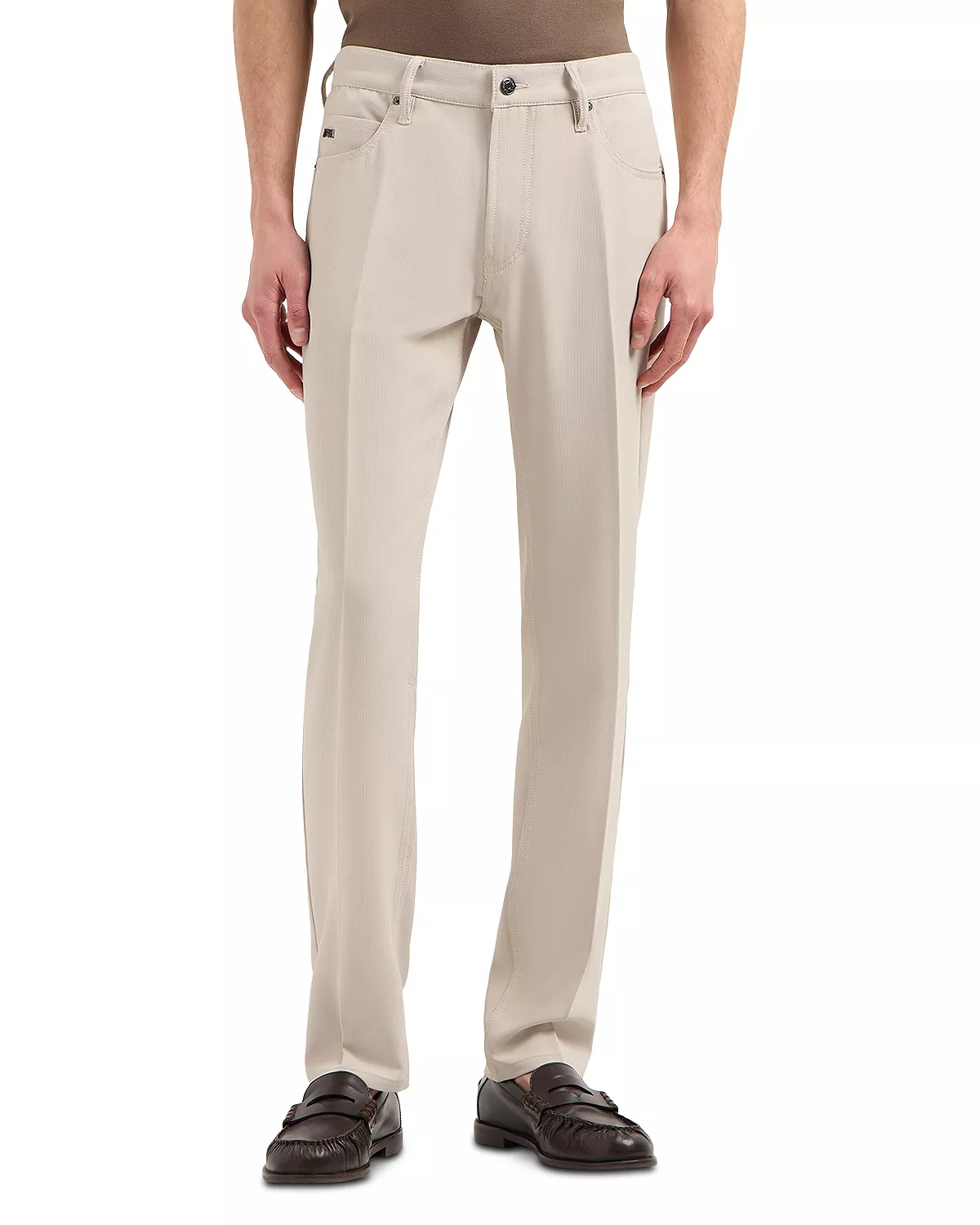 SIZE & FIT - Fits true to size, order your normal size - Regular fit - 10" rise, 32" inseam, 7" leg opening, based on a size 32 - Model measurements: 6'2 height, wearing a size 32 PRODUCT DETAILS - Zip fly and button closure - Five-pocket silhouette - Metal eagle at back right pocket - Leather logo patch - Regular leg - Sewn hem - Imported Web ID: 5383813 MATERIAL & CARE - 92% polyester/8% elastane - Machine wash