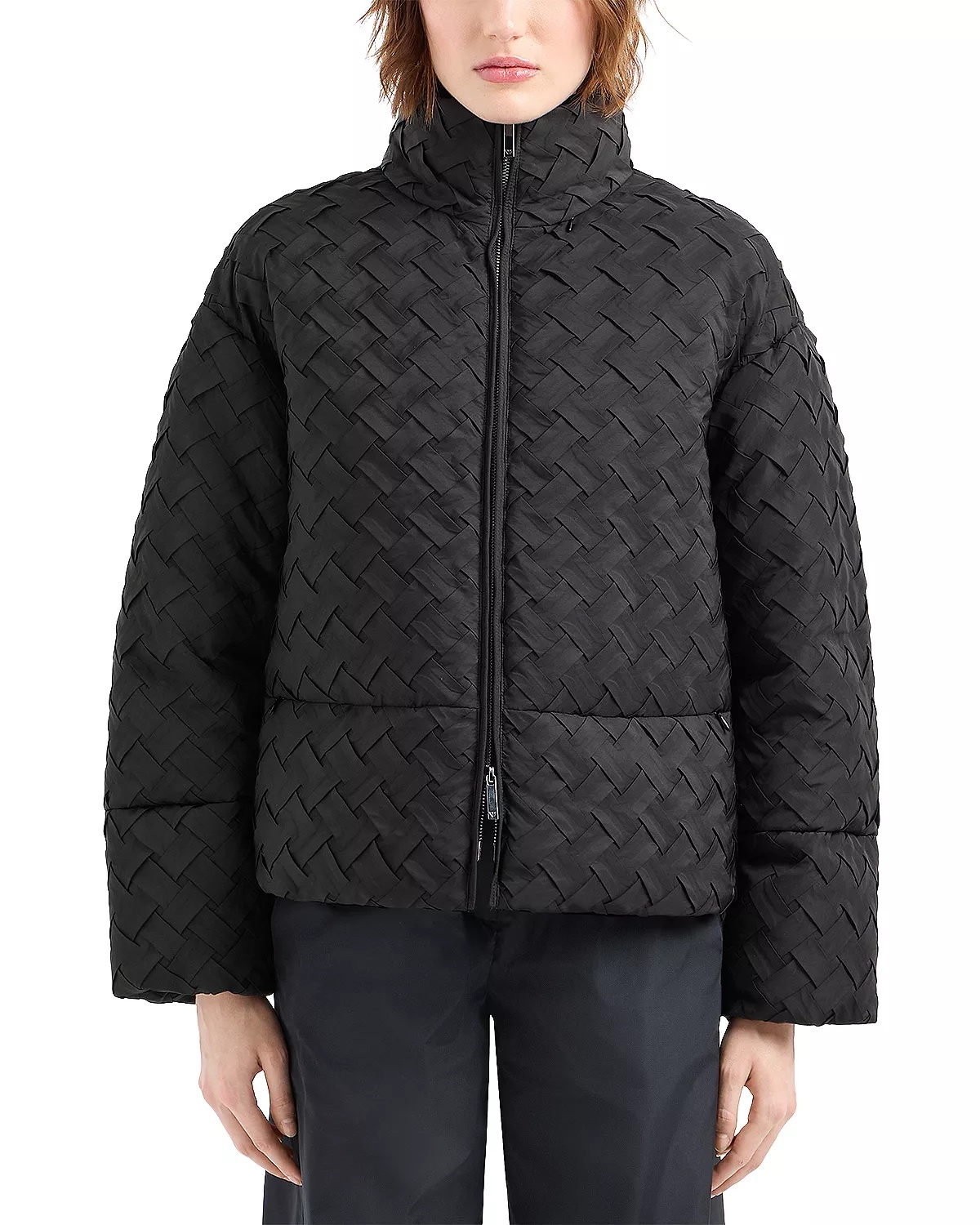 SIZE & FIT - Fits true to size, order your normal size PRODUCT DETAILS - Stand collar - Long sleeves, elastic cuffs - Front zipper closure - Slit pockets at sides - Technoweave texture - Lined - Imported Web ID: 5177029 MATERIAL & CARE - Shell: 100% polyester; fill: 100% polyester; lining: 100% polyamide - Dry clean