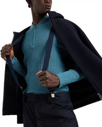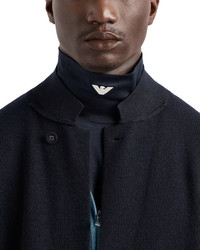 Virgin wool-blend knit double-breasted blazer