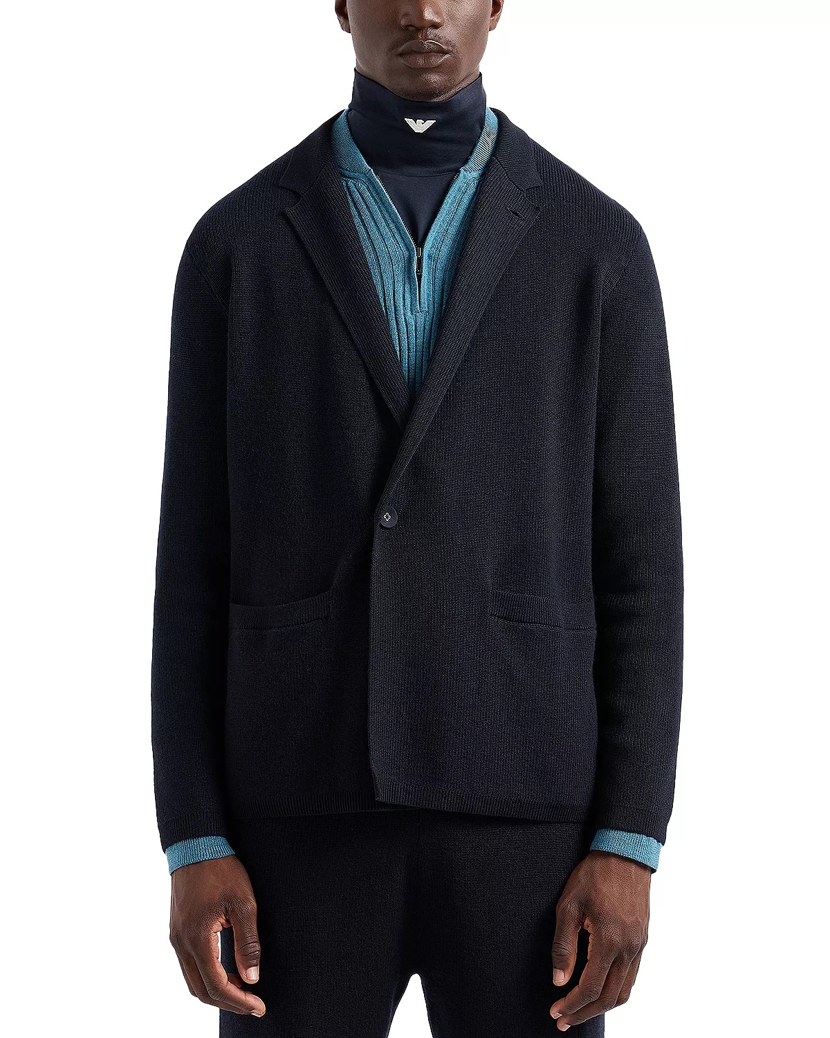 SIZE & FIT - Fits true to size, order your normal size - Designed for a regular fit - Model measurements: 6'2" height, wearing a size 48/M PRODUCT DETAILS - Notch lapels - One button front closure - Long sleeves - Two patch pockets - Half cardigan stitch - Ribbed trim - Imported Web ID: 5151576 MATERIAL & CARE - 67% Virgin wool/33% cotton - Dry clean
