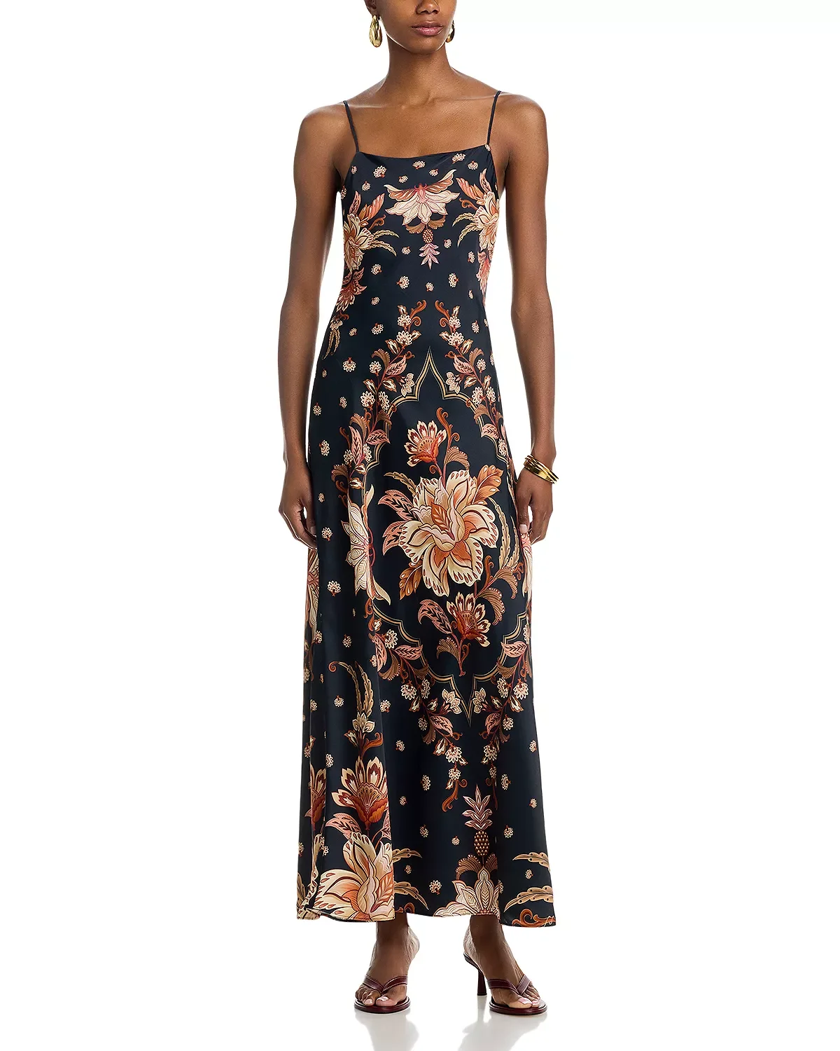 Black Majestic Garden Lenzing™ Ecovero™ Viscose Slip Maxi Dress