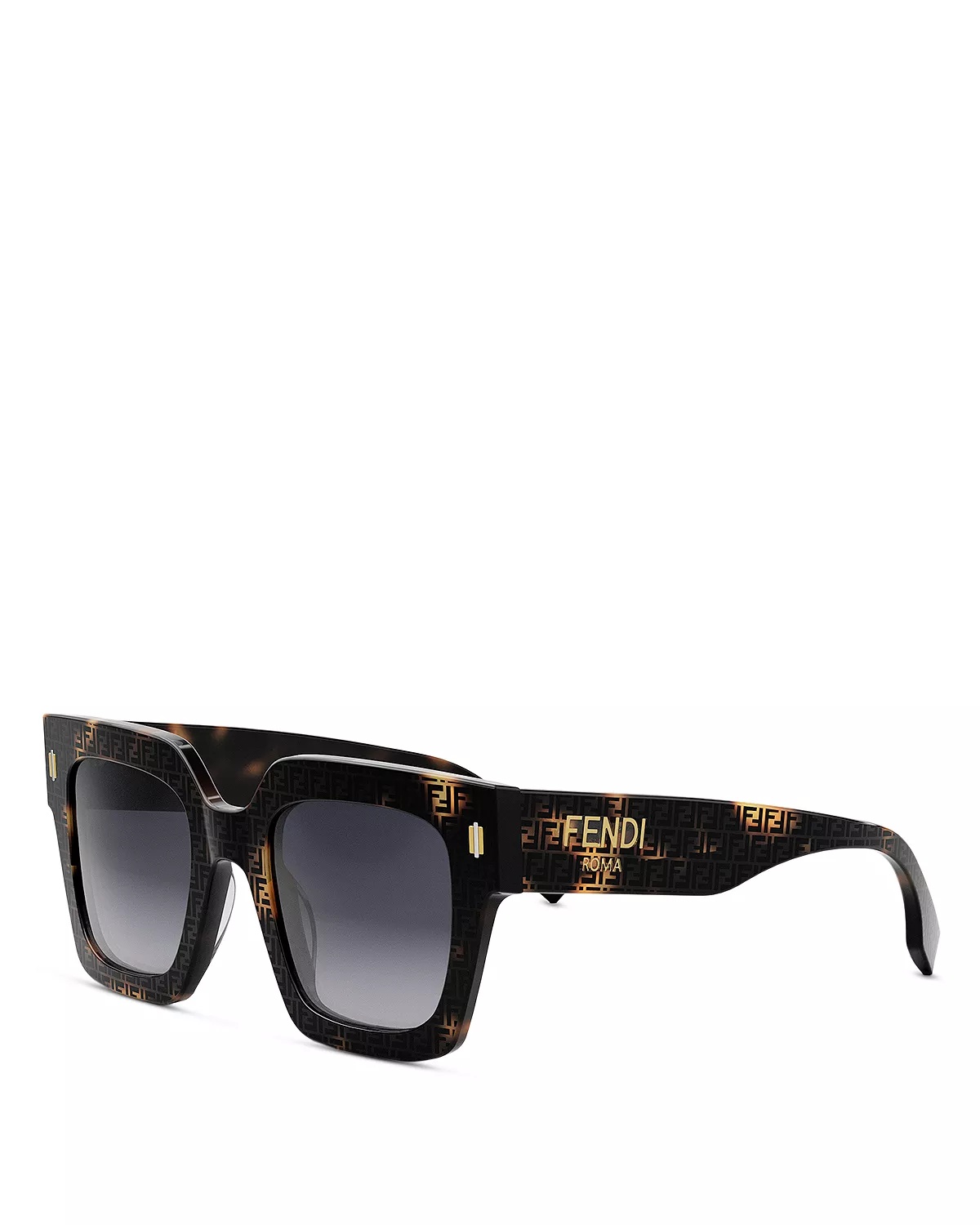 Square Fendi Bold sunglasses in Havana acetate with FF motif. Temples with gold-colored metal Fendi