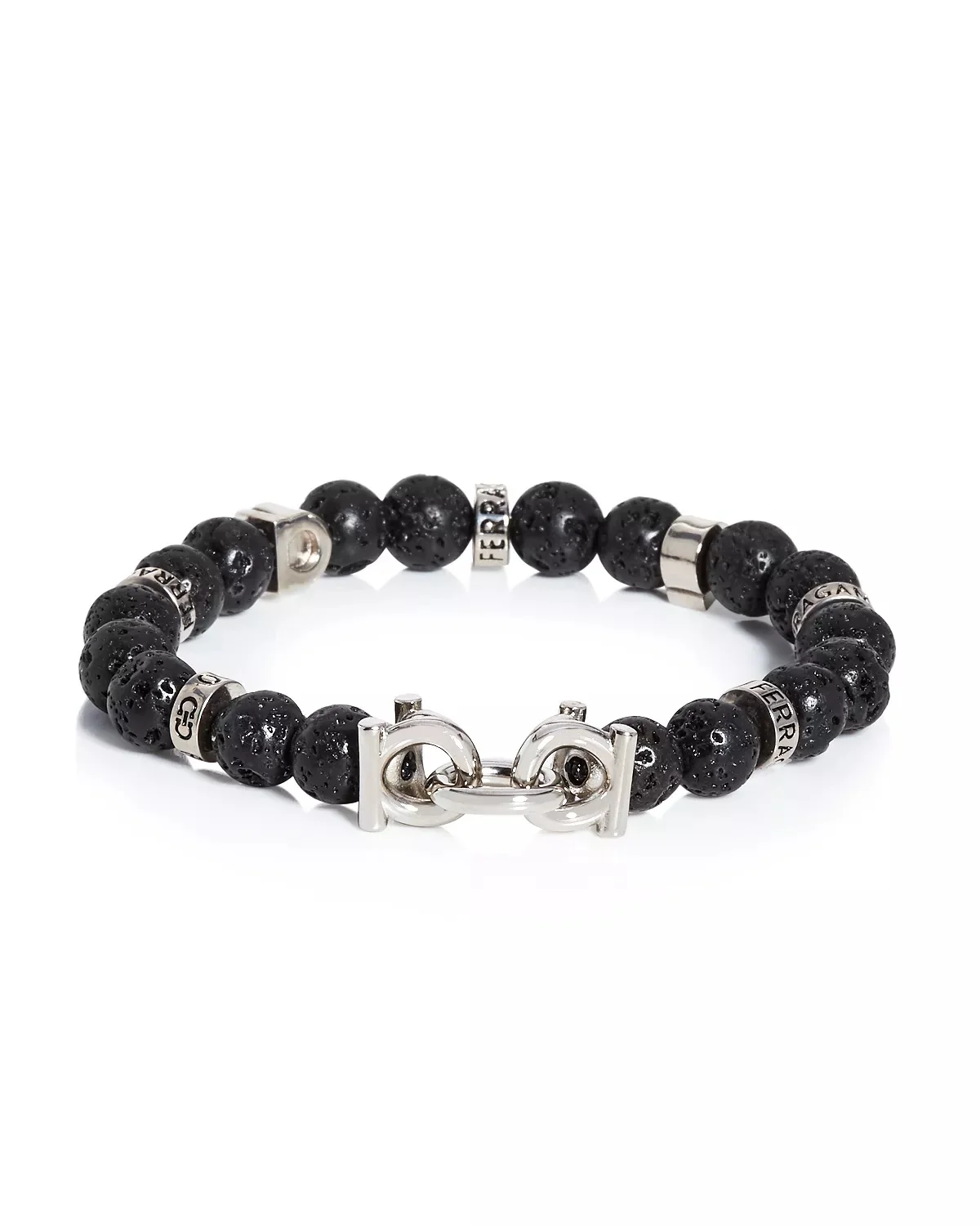 PRODUCT DETAILS - A stretchy strand of bold lava beads with signature spacer beads and accents - 2.5" diameter - Elasticized band - Signature double Gancini hardware detail - Logo engraved spacers - Lava beads, brass - Made in Italy Web ID: 3456991