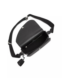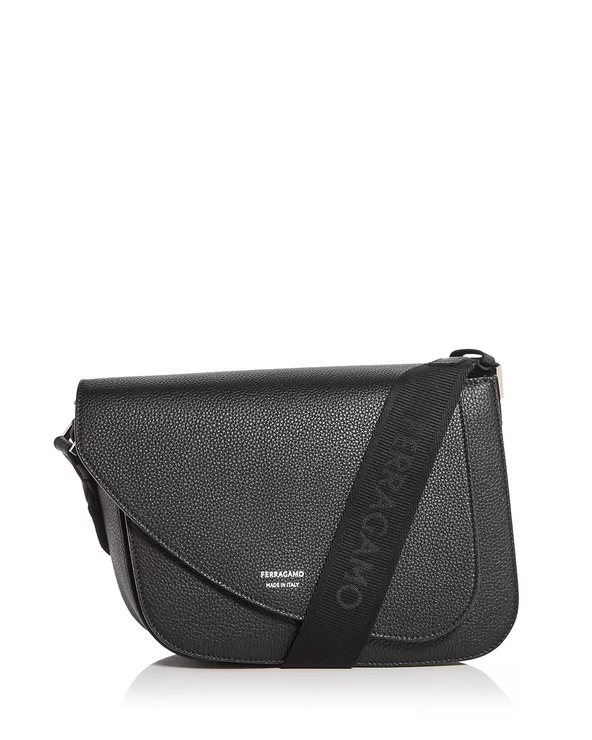 PRODUCT DETAILS - Adjustable crossbody strap, 21" drop - Dimensions: 9"W x 3"D x7"H - Flap closure - Exterior slip pocket, interior slip pocket under flap, interior zip pocket - Silver-tone hardware - Removable logo key fob at strap - Logo at strap and front - Fabric linig - Leather - Made in Italy Web ID: 4944470