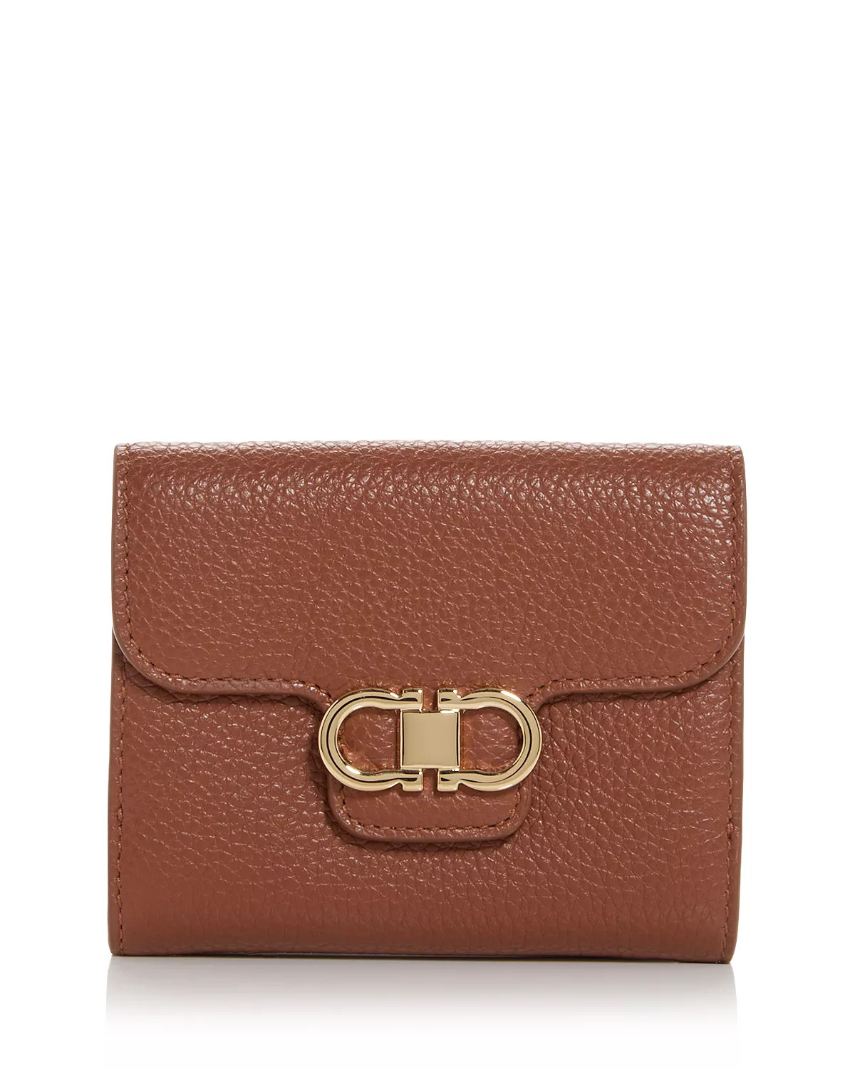 PRODUCT DETAILS - Dimensions: 4.25"W x 1.25"D x 3.5"H - Snap tab closure - Exterior snap pocket, interior bill compartment, four interior slip pockets, six interior card slots, interior ID window - Signature Gancini hardware at front - Gold-tone hardware - Fabric and leather lining - Leather - Made in Italy Web ID: 5441736