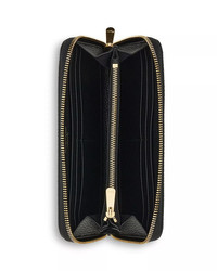 PRODUCT DETAILS - Dimensions: 7.5"W x 4.1"H - Zip closure - Interior zip pocket, card slots - Logo hardware on front - Mannequin model measurements: 5'10" height, wearing a size 4 or small - Fabric lining - Leather; lining: 50% cotton/50% rayon - Made in Italy Web ID: 4446277