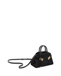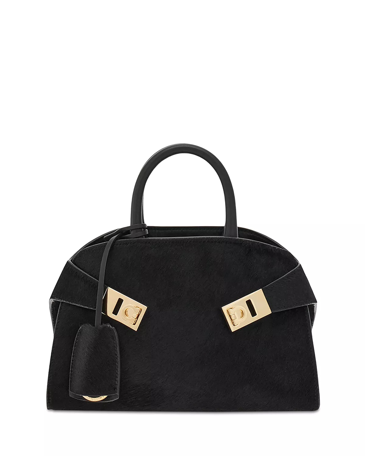 PRODUCT DETAILS - Top handles - Removable crossbody strap, 21.6" drop - Dimensions: 8.9"L x 5.5"D x 4.3"H - Belted detail with gold-tone Gancino buckle - Two interior slip pockets - Signature key fob - Protective metal feet - Lined - Main: real calf hair, origin: Italy, dyed; lining: leather - Made in Italy Web ID: 5209910