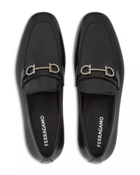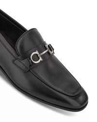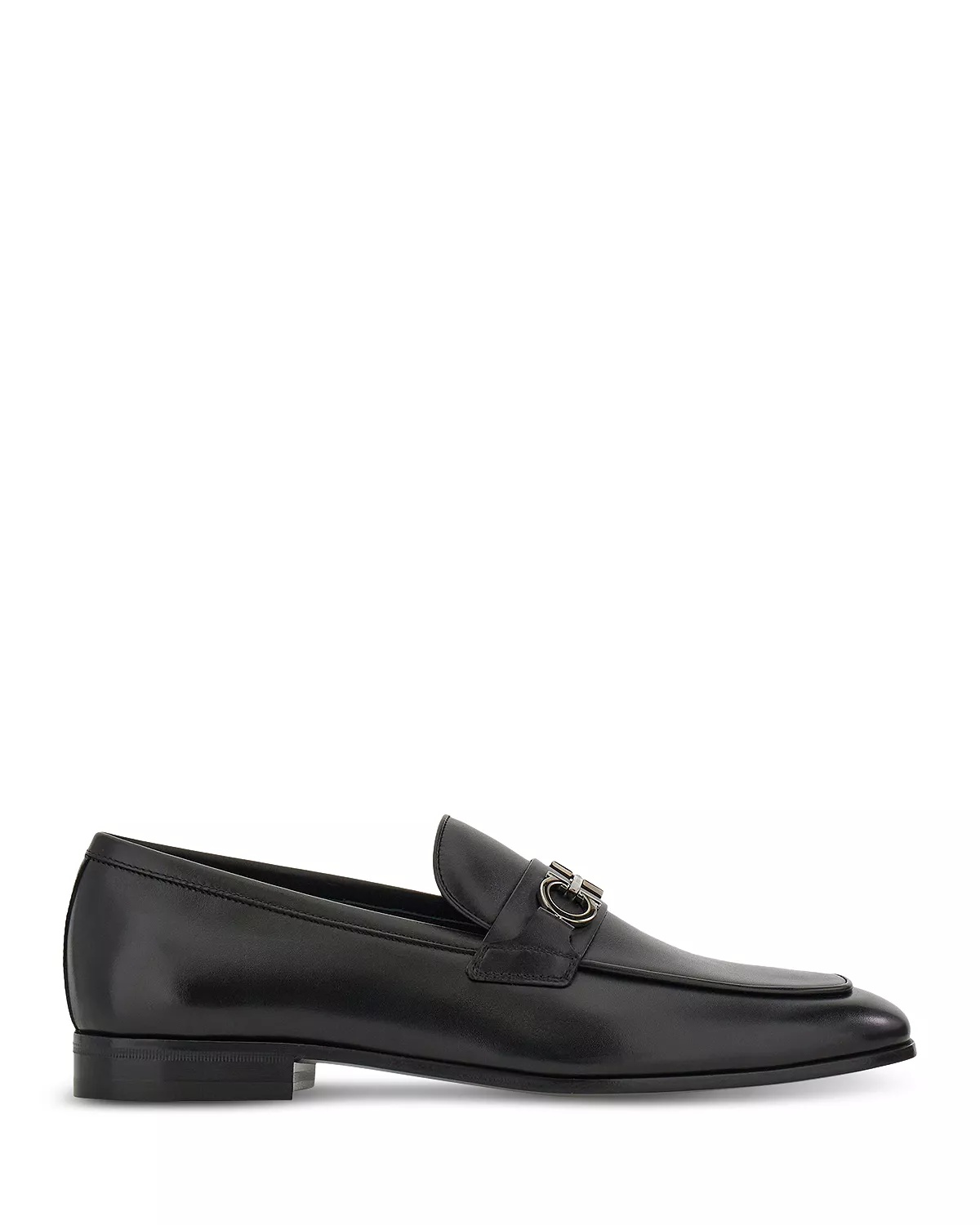 SIZE & FIT - Italian-born Salvatore Ferragamo dreamed of becoming a shoemaker, and started garnering acclaim in Old Hollywood crafting cowboy boots for Western films. - This cultivated relationships with A-list stars and helped catapult his creations beyond boots with spurs. - The designer's time-honored leatherworking skills and knowledge of anatomy led to the creation of a patented sole design that supported the natural curvature of the foot. - Three generations later, the label is still sought after for its handcrafted shoes and handbags—and innovative spirit. - Polished and refined, the sumptuous accessories often feature house staples like the Gancini bit and the Vara bow. PRODUCT DETAILS - Runs large - Slightly squared-toe - Slip-on - Visible stitching around the tray - Gancio bit in a titanium finish at the side of the saddle strap - Red stitching and a flexible leather sole - Leather upper, leather lining, leather sole - Made in Italy Web ID: 5212985