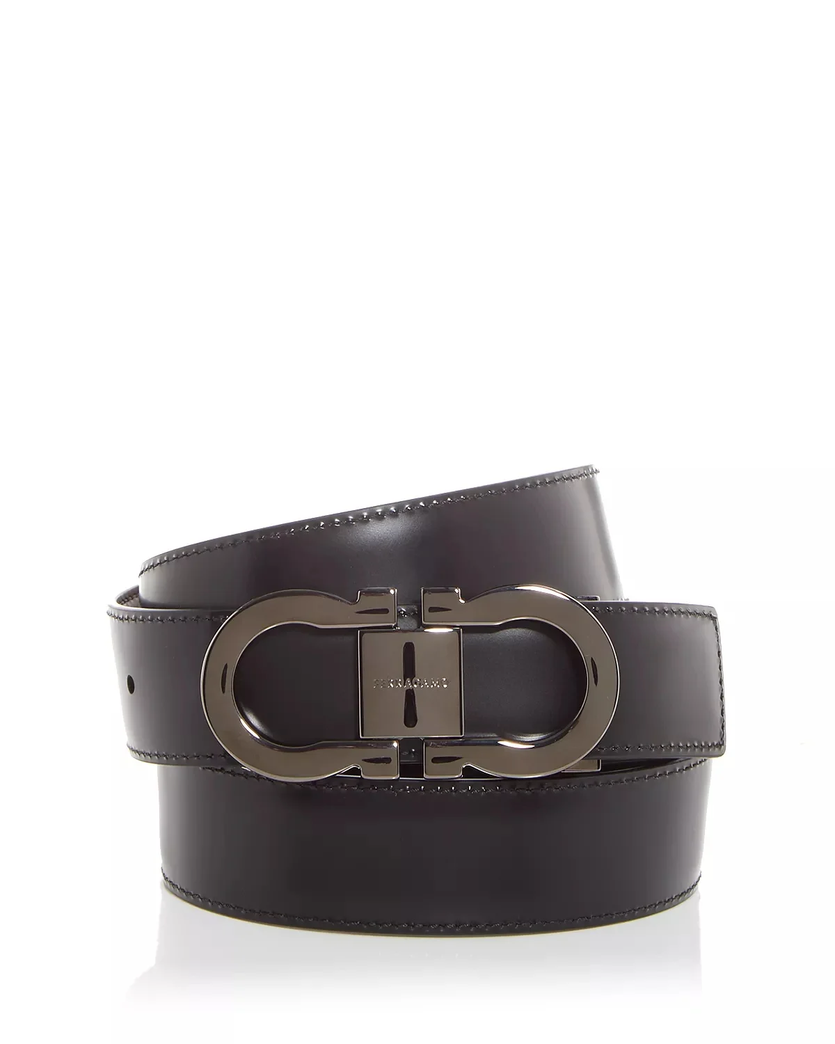 SIZE & FIT - Italian-born Salvatore Ferragamo dreamed of becoming a shoemaker, and started garnering acclaim in Old Hollywood crafting cowboy boots for Western films. This cultivated relationships A-list stars and helped catapult his creations beyond boots - with spurs. The designer's time-honored leatherworking skills and knowledge of anatomy led to the creation of a patented sole design that supported the natural curvature of the foot. Three generations later, - the label is still sought after for its handcrafted shoes and handbags—and innovative spirit. Polished and refined, the sumptuous accessories often feature house staples like the Gancini bit and the Vara bow. - Three generations later, the label is still sought after for its handcrafted shoes and handbags—and innovative spirit. - Polished and refined, the sumptuous accessories often feature house staples like the Gancini bit and the Vara bow. PRODUCT DETAILS - 1.3"W - Belt fits small, order two waist sizes up - Belt is adjustable and can be cut to size for a custom fit - Complimentary resizing of cut-to-fit belts available at select Men's Stores at Bloomingdale's with every belt purchase. - Reversible - Gancini plaque buckle - Leather - Made in Italy Web ID: 4825558