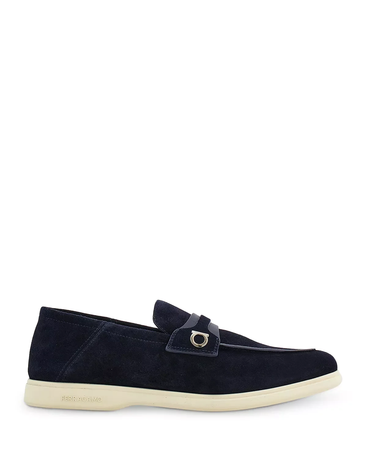SIZE & FIT - Italian-born Salvatore Ferragamo dreamed of becoming a shoemaker, and started garnering acclaim in Old Hollywood crafting cowboy boots for Western films. - This cultivated relationships with A-list stars and helped catapult his creations beyond boots with spurs. - The designer's time-honored leatherworking skills and knowledge of anatomy led to the creation of a patented sole design that supported the natural curvature of the foot. - Three generations later, the label is still sought after for its handcrafted shoes and handbags—and innovative spirit. - Polished and refined, the sumptuous accessories often feature house staples like the Gancini bit and the Vara bow. PRODUCT DETAILS - Fits true to size, order your normal size - Almond toe - Slip on - Contrast piping and crossbar detailing - Leather upper and lining, rubber sole - Made in Italy Web ID: 5829935