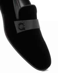 SIZE & FIT - Italian-born Salvatore Ferragamo dreamed of becoming a shoemaker, and started garnering acclaim in Old Hollywood crafting cowboy boots for Western films. This cultivated relationships A-list stars and helped catapult his creations beyond boots - with spurs. The designer's time-honored leatherworking skills and knowledge of anatomy led to the creation of a patented sole design that supported the natural curvature of the foot. Three generations later, - the label is still sought after for its handcrafted shoes and handbags—and innovative spirit. Polished and refined, the sumptuous accessories often feature house staples like the Gancini bit and the Vara bow. - Three generations later, the label is still sought after for its handcrafted shoes and handbags—and innovative spirit. - Polished and refined, the sumptuous accessories often feature house staples like the Gancini bit and the Vara bow. PRODUCT DETAILS - Fits true to size, order your normal size - Round toe - Slip on - Grosgrain ribbon trim detail at topline and at vamp - Logo hardware at vamp - Velvet upper, leather lining and sole - Made in Italy Web ID: 4631981