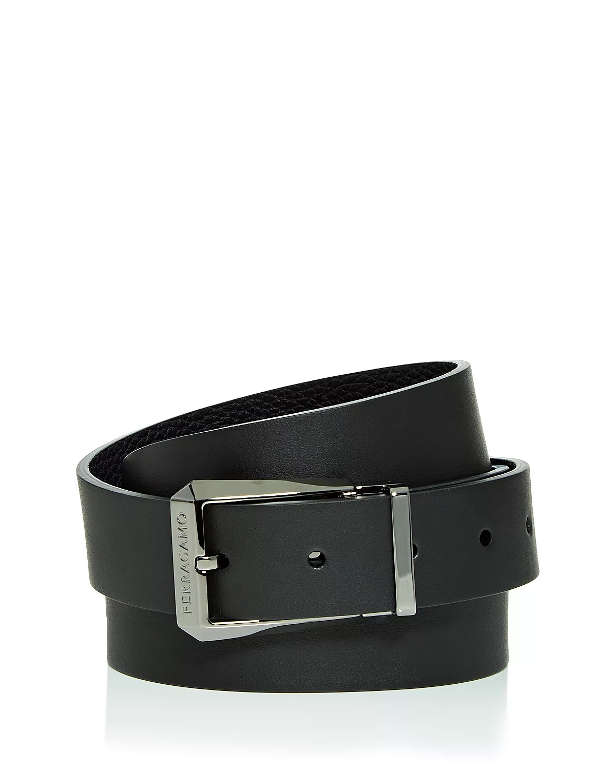 PRODUCT DETAILS - 1.25" wide - Gunmetal-tone engraved logo buckle - Reverses from smooth to pebbled leather - Belt fits small, order two waist sizes up - Belt is adjustable and can be cut to size for a custom fit - Leather - Made in Italy Web ID: 5022986