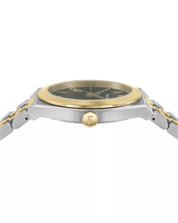 PRODUCT DETAILS - Gold IP; stainless steel; sapphire crystal - Case size: 40mm - Deployant clasp closure - Water resistant to 5 ATM - Swiss quartz movement - Green dial - Gold IP bezel - Two-tone stainless steel link bracelet - Manufacturer's two-year limited warranty - Photo may have been enlarged and/or enhanced. - Made in Switzerland Web ID: 5052182