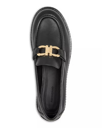 SIZE & FIT - Italian-born Salvatore Ferragamo dreamed of becoming a shoemaker, and started garnering acclaim in Old Hollywood crafting cowboy boots for Western films. This cultivated relationships A-list stars and helped catapult his creations beyond boots - with spurs. The designer's time-honored leatherworking skills and knowledge of anatomy led to the creation of a patented sole design that supported the natural curvature of the foot. Three generations later, - the label is still sought after for its handcrafted shoes and handbags—and innovative spirit. Polished and refined, the sumptuous accessories often feature house staples like the Gancini bit and the Vara bow. - Three generations later, the label is still sought after for its handcrafted shoes and handbags—and innovative spirit. - Polished and refined, the sumptuous accessories often feature house staples like the Gancini bit and the Vara bow. PRODUCT DETAILS - Fits true to size, order your normal size - Round moc toe - Slip on - Gancini bit logo hardware at instep strap - Lug sole - 0.8" heel - Leather upper and lining, rubber sole - Made in Italy Web ID: 4824330