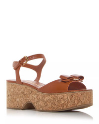 SIZE & FIT - Italian-born Salvatore Ferragamo dreamed of becoming a shoemaker, and started garnering acclaim in Old Hollywood crafting cowboy boots for Western films. - This cultivated relationships with A-list stars and helped catapult his creations beyond boots with spurs. - The designer's time-honored leatherworking skills and knowledge of anatomy led to the creation of a patented sole design that supported the natural curvature of the foot. - Three generations later, the label is still sought after for its handcrafted shoes and handbags—and innovative spirit. - Polished and refined, the sumptuous accessories often feature house staples like the Gancini bit and the Vara bow. PRODUCT DETAILS - Fits true to size, order your normal size - Open toe - Buckled ankle strap - Signature bow with logo hardware detail - 2.75" cork wedge heel, 1.25" heel, feels like 1.5" heel - Leather upper and lining, rubber sole - Made in Italy Web ID: 5437441