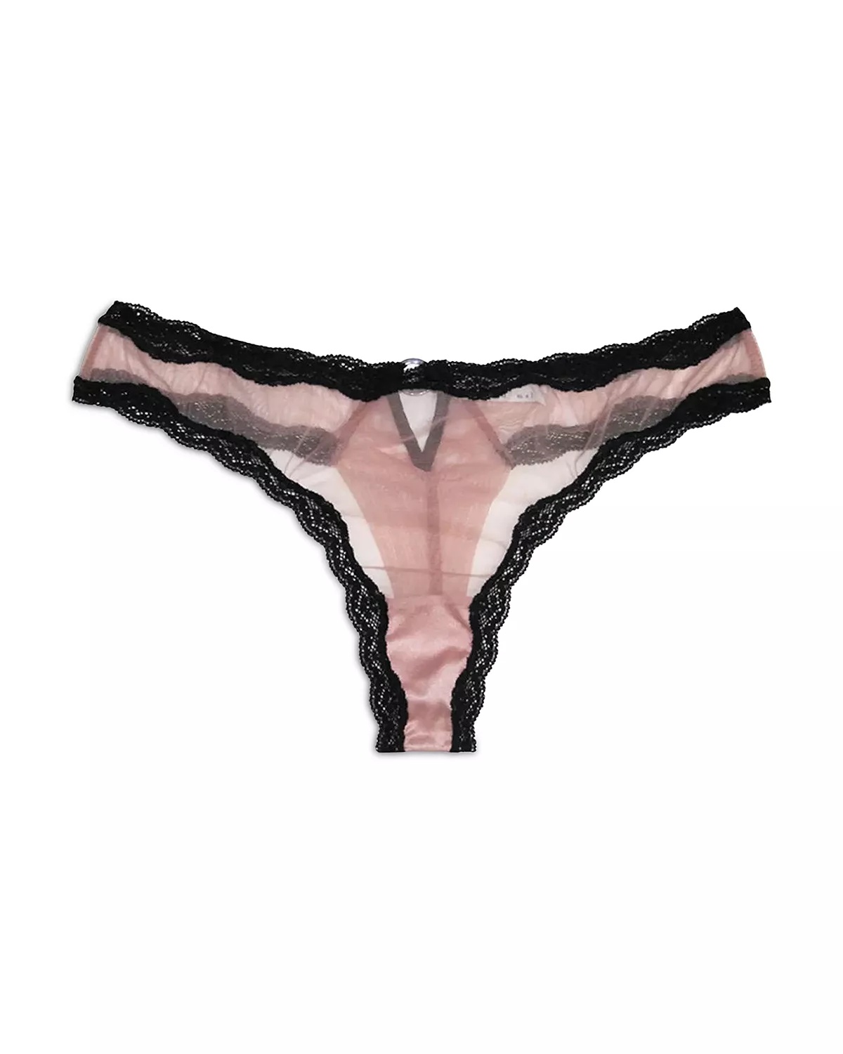 SIZE & FIT - Fits true to size, order your normal size PRODUCT DETAILS - Elasticized waistband, low rise - Sheer mesh body with sheer lace trim - Back cutout with ring hardware detail - Lined gusset - Style #PY0067 - Imported Web ID: 4540066 MATERIAL & CARE - 84% polyamide/16% elastane; trim: 81% nylon/19% spandex; gusset: 100% cotton - Hand wash