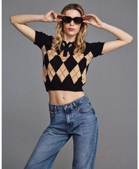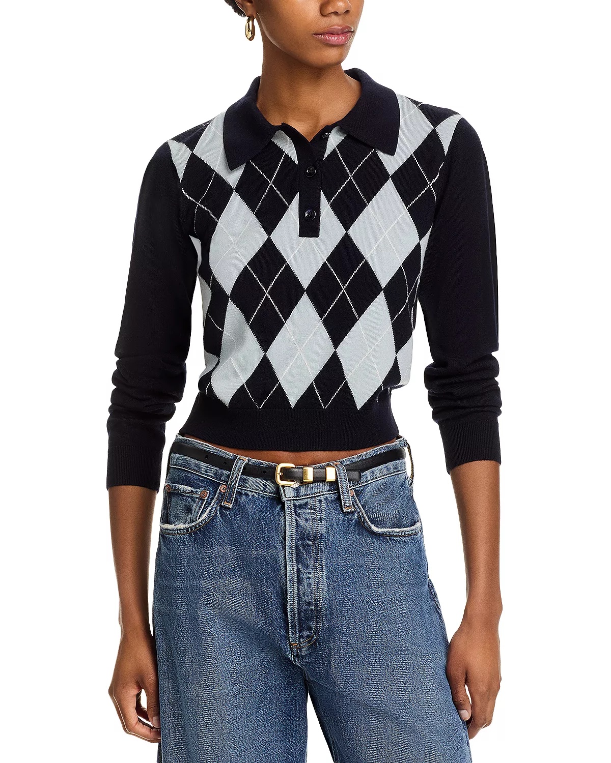 SIZE & FIT - Fits true to size, order your normal size - Approx. 19.5" length, based on a size small - Model measurements: 5'10" height, 33" bust, 25" waist, 35" hips, wearing a size small PRODUCT DETAILS - Polo collar - Half-placket with button closures - Long sleeves - Argyle pattern - Merino wool knit - Imported Web ID: 5510432 MATERIAL & CARE - 96% wool, 1% spandex, 3% other fiber - Dry clean