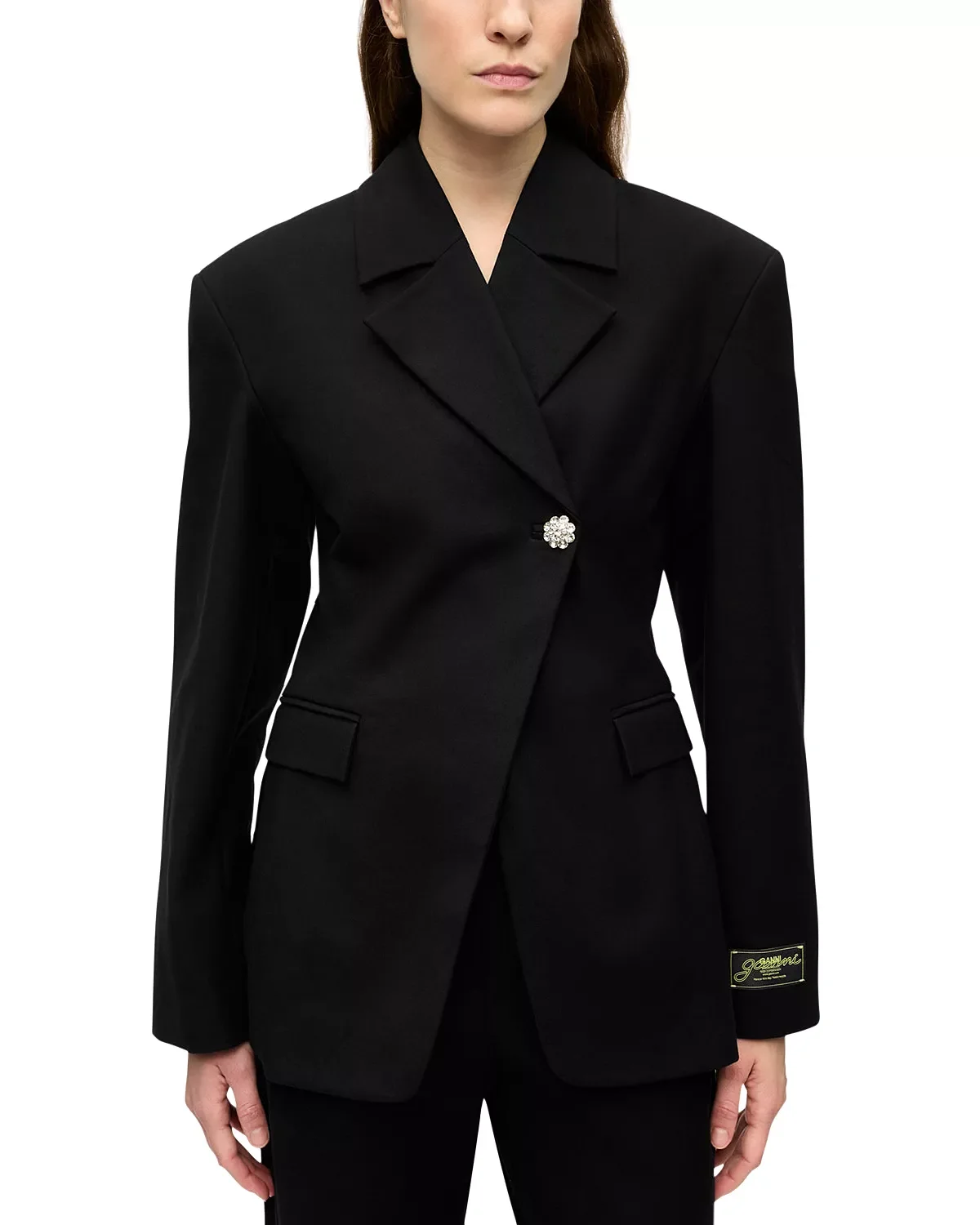 SIZE & FIT - Fits true to size, order your normal size - Designed for a regular fit PRODUCT DETAILS - Notched lapels - Long sleeves, three-button cuffs - Asymmetrical diamanté rhinestone button closure - Flap hip pockets - Cutaway front hem - Lined - B Corp Certified. B Corp is one of the most demanding certifications that evaluates brands' social and environmental impact, with over 300 questions about governance, workers, communities and impact on the environment. - Made in Turkey Web ID: 5446868 MATERIAL & CARE - 92% cotton/8% elastane; lining: 100% cotton - Dry clean