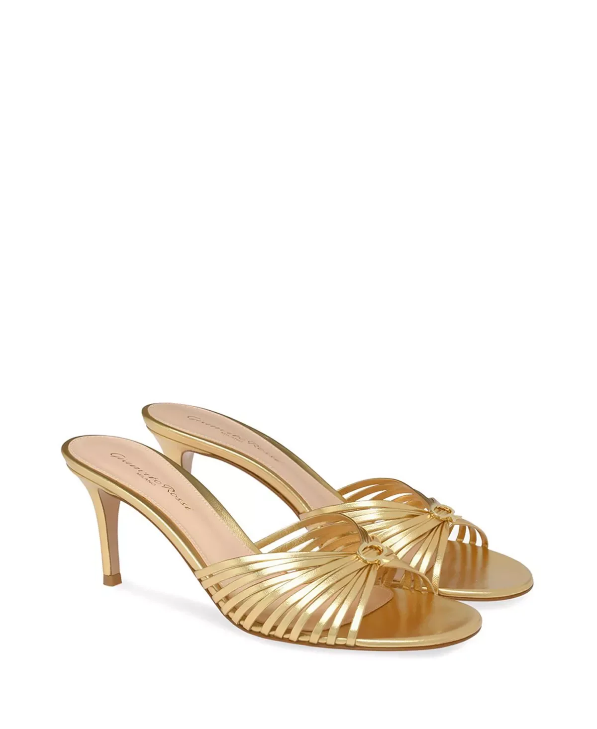 SIZE & FIT - Fits true to size - Heel Height:3" PRODUCT DETAILS - No closure - Crafted from metallic-effect leather, Vyna is a round open-toe mule with a 70mm thin heel. The three-colour or single-colour multistrap upper is embellished with the metallic Ribbon detail, signature of the Maison. Handmade in Italy. - 100% Nappa - Made in Italy Web ID: 5588752
