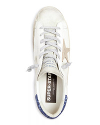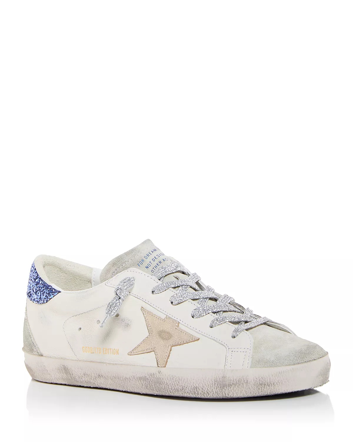 Super-Star LTD in nappa leather with platinum star and blue glitter heel tab