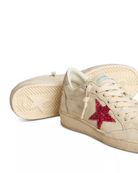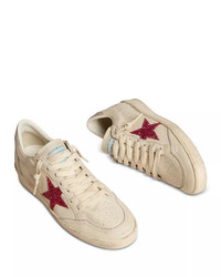 Ball Star LTD with fuchsia glitter star and light gray suede heel tab