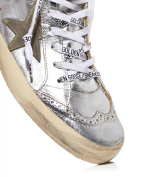 Mid Star sneakers in silver metallic leather with star and flash in dove-gray suede