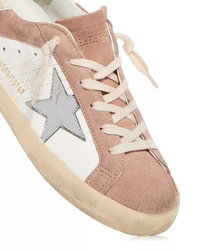 Women’s Super-Star sneakers in pink suede with silver metallic leather star