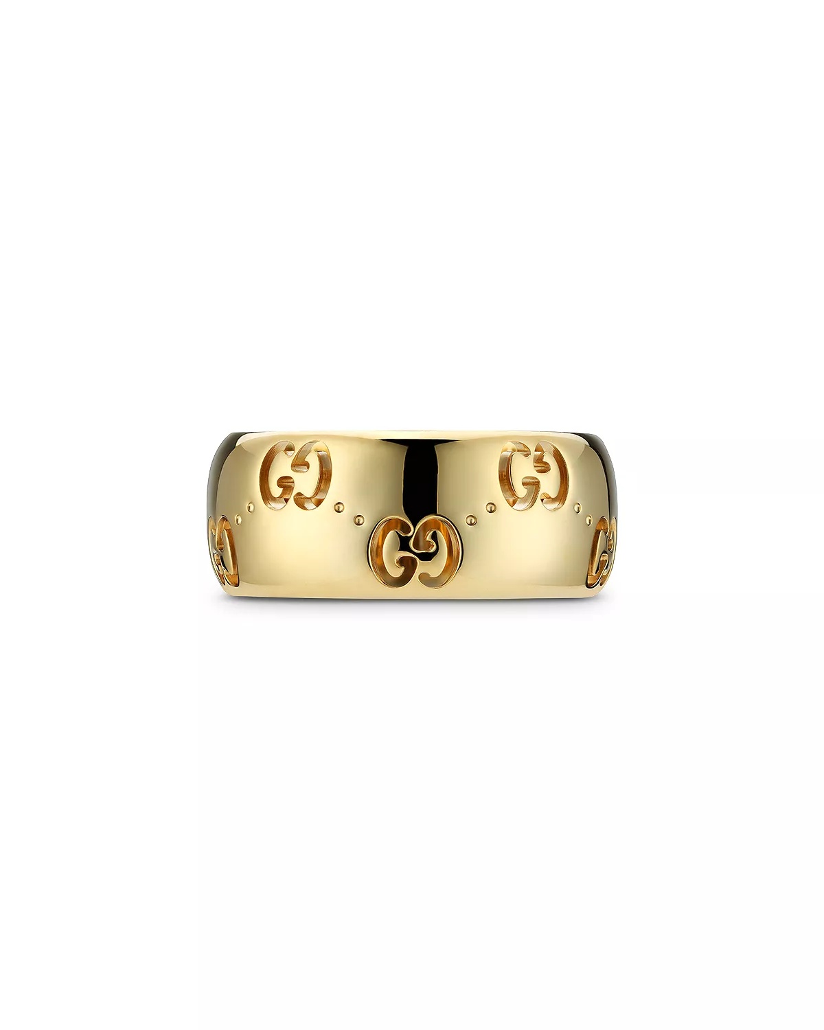 SIZE & FIT - Founded in Florence in 1921, Gucci is one of the world's leading luxury fashion brands, with a renowned reputation for creativity, innovation, and Italian craftsmanship. - Reflecting and defining the styles and attitudes of each era, Gucci has influenced fashion and culture for more than a century. PRODUCT DETAILS - From the Icon collection - A luxurious 18K yellow gold wide band with Gucci logo - 18K yellow gold - 8mm - Photo may have been enlarged and/or enhanced - Made in Italy Web ID: 5365332