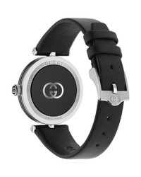SIZE & FIT - Founded in Florence in 1921, Gucci is one of the world's leading luxury fashion brands, with a renowned reputation for creativity, innovation, and Italian craftsmanship. - Reflecting and defining the styles and attitudes of each era, Gucci has influenced fashion and culture for more than a century. PRODUCT DETAILS - Stainless steel; leather; sapphire crystal - Case size: 30mm - Buckle closure - Water resistant to 5 ATM - Swiss quartz movement - Black textured dial - Black leather strap - Manufacturer's 2-year limited warranty - Photo may have been enlarged and/or enhanced. - Made in Switzerland Web ID: 5378449