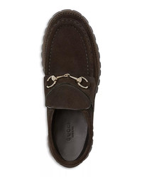 SIZE & FIT - Founded in Florence in 1921, Gucci is one of the world's leading luxury fashion brands, with a renowned reputation for creativity, innovation, and Italian craftsmanship. - Reflecting and defining the styles and attitudes of each era, Gucci has influenced fashion and culture for more than a century. PRODUCT DETAILS - Fits true to size, order your normal size - Stitched moc toe - Pull on - Signature horsebit hardware at vamp - Suede upper, leather lining, rubber sole - Made in Italy Web ID: 5561657