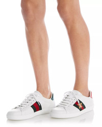 SIZE & FIT - Founded in Florence in 1921, Gucci is one of the world's leading luxury fashion brands, with a renowned reputation for creativity, innovation, and Italian craftsmanship. - Reflecting and defining the styles and attitudes of each era, Gucci has influenced fashion and culture for more than a century. PRODUCT DETAILS - Fits large, order the next size down - Padded ankle - Lace up - Iconic gold-tone embroidered bee against signature blue and red webbing - Snake-embossed metallic leather detail at heel - Logo at heel - Leather and fabric upper, leather lining, rubber sole - Made in Italy Web ID: 1751703