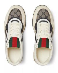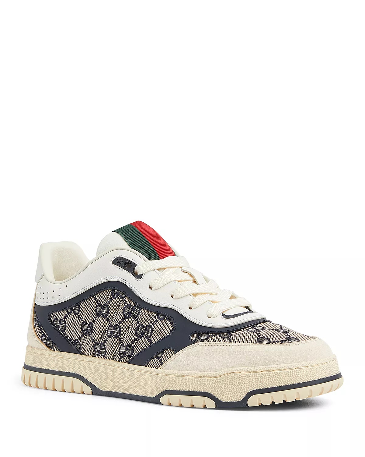 SIZE & FIT - Founded in Florence in 1921, Gucci is one of the world's leading luxury fashion brands, with a renowned reputation for creativity, innovation, and Italian craftsmanship. - Reflecting and defining the styles and attitudes of each era, Gucci has influenced fashion and culture for more than a century. PRODUCT DETAILS - Fits true to size, order your normal size - Padded tongue and collar for optimal comfort - Lace up - Signature web stripe detail at tongue - Signature GG monogram quilted canvas with leather overlay details - Perforated detailing at sides - Logo at tongue and heel - Leather and fabric upper, leather lining, rubber sole - Made in Italy Web ID: 5140710