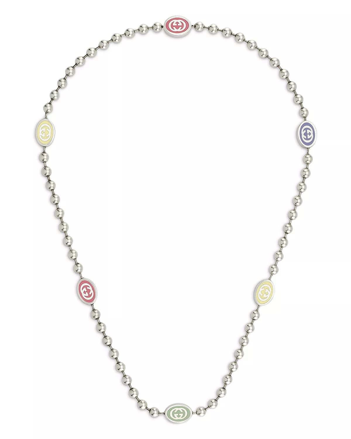 SIZE & FIT - Founded in Florence in 1921, Gucci is one of the world's leading luxury fashion brands, with a renowned reputation for creativity, innovation, and Italian craftsmanship. - Reflecting and defining the styles and attitudes of each era, Gucci has influenced fashion and culture for more than a century. PRODUCT DETAILS - From the Boule collection - Express yourself with the subtle sheen of this multicolor enamel double G logo collar necklace - Sterling silver; enamel - 19.6"L - Slide & lock clasp closure - Photo may have been enlarged and/or enhanced - Some silver jewelry may be surface-coated with rhodium to enhance metal color and shine; it may wear off over time requiring replating. - Made in Italy Web ID: 4709475