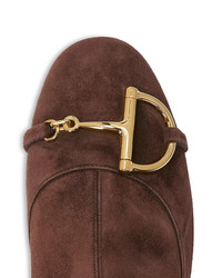 SIZE & FIT - Founded in Florence in 1921, Gucci is one of the world's leading luxury fashion brands, with a renowned reputation for creativity, innovation, and Italian craftsmanship. - Reflecting and defining the styles and attitudes of each era, Gucci has influenced fashion and culture for more than a century. PRODUCT DETAILS - Fits true to size, order your normal size - Almond toe - Functional inside zip - Bit buckle hardware - 2.9" heel - Suede upper and lining, leather sole - Made in Italy Web ID: 5730784