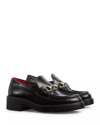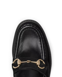 SIZE & FIT - Founded in Florence in 1921, Gucci is one of the world's leading luxury fashion brands, with a renowned reputation for creativity, innovation, and Italian craftsmanship. - Reflecting and defining the styles and attitudes of each era, Gucci has influenced fashion and culture for more than a century. PRODUCT DETAILS - Fits true to size, order your normal size - Stitched moc toe - Slip on - Signature horsebit hardware at vamp - 2" stacked heel - Leather upper and lining, rubber sole - Made in Italy Web ID: 5150729