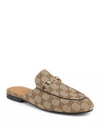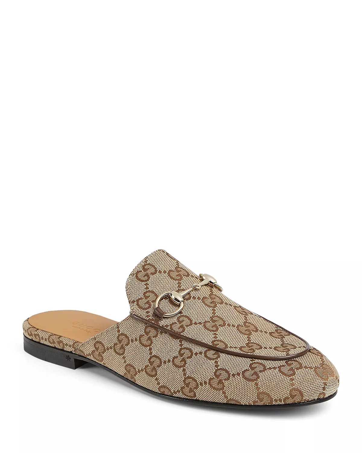PRODUCT DETAILS - With its classic almond toe, soft, sumptuous leather, and gold-tone horsebit, the Gucci Princetown mule goes equally well with tailored suits, separates and your favorite jeans and tee. - Almond toe; slip on - Leather flat slippers with gold-tone horsebit - Leather, suede or GG print canvas upper - Leather lining and sole - Made in Italy Web ID: 1639856