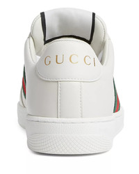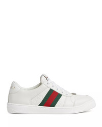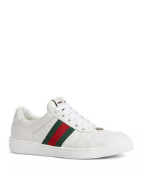 SIZE & FIT - Founded in Florence in 1921, Gucci is one of the world's leading luxury fashion brands, with a renowned reputation for creativity, innovation, and Italian craftsmanship. - Reflecting and defining the styles and attitudes of each era, Gucci has influenced fashion and culture for more than a century. PRODUCT DETAILS - Fits true to size, order your normal size - Round toe - Lace up - Signature embossed GG monogram with stripe webbing at sides - Logo at tongue, side and heel - Leather and fabric upper, leather lining, rubber sole - Made in Italy Web ID: 5150809