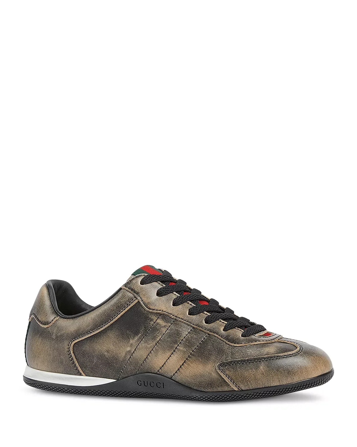 SIZE & FIT - Founded in Florence in 1921, Gucci is one of the world's leading luxury fashion brands, with a renowned reputation for creativity, innovation, and Italian craftsmanship. - Reflecting and defining the styles and attitudes of each era, Gucci has influenced fashion and culture for more than a century. PRODUCT DETAILS - Fits true to size, order your normal size - Round toe - Lace up - Includes a dedicated dust bag - Green and red Web tongue and detail on the back - Gucci logo on the bi-color rubber outsole and sole - 0.4" heel - Leather upper and lining, rubber sole - Made in Italy Web ID: 5834748
