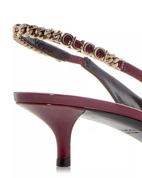 SIZE & FIT - Founded in Florence in 1921, Gucci is one of the world's leading luxury fashion brands, with a renowned reputation for creativity, innovation, and Italian craftsmanship. - Reflecting and defining the styles and attitudes of each era, Gucci has influenced fashion and culture for more than a century. PRODUCT DETAILS - Fits true to size, order your normal size - Elasticized slingback strap for a flexible fit - Pointed toe - Logo and chain hardware at strap - 1.75" kitten heel - Leather upper, lining and sole - Made in Italy Web ID: 5025833