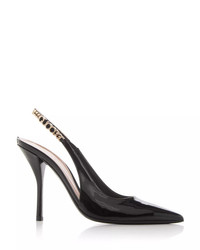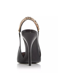 SIZE & FIT - Founded in Florence in 1921, Gucci is one of the world's leading luxury fashion brands, with a renowned reputation for creativity, innovation, and Italian craftsmanship. - Reflecting and defining the styles and attitudes of each era, Gucci has influenced fashion and culture for more than a century. PRODUCT DETAILS - Fits true to size, order your normal size - Elasticized slingback strap for a flexible fit - Pointed toe - Logo and chain hardware at strap - 4.5" stiletto heel - Leather upper, lining and sole - Made in Italy Web ID: 5025836
