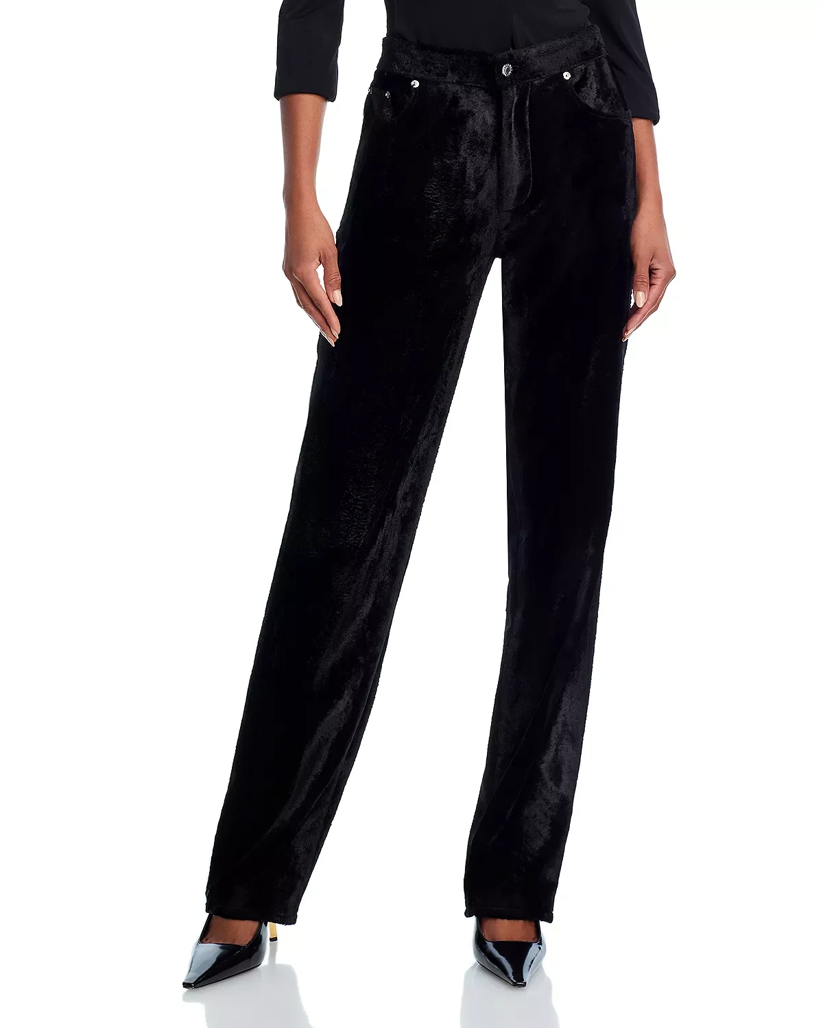 SIZE & FIT - Fits true to size, order your normal size - 10.85" rise, 33.5" inseam, 16.5" leg opening, based on a size 26 PRODUCT DETAILS - Zip fly with button closure - Five-pocket silhouette - Velvet fabrication - Straight-leg silhouette - Imported Web ID: 5741022 MATERIAL & CARE - 72% rayon/28% cotton - Dry clean