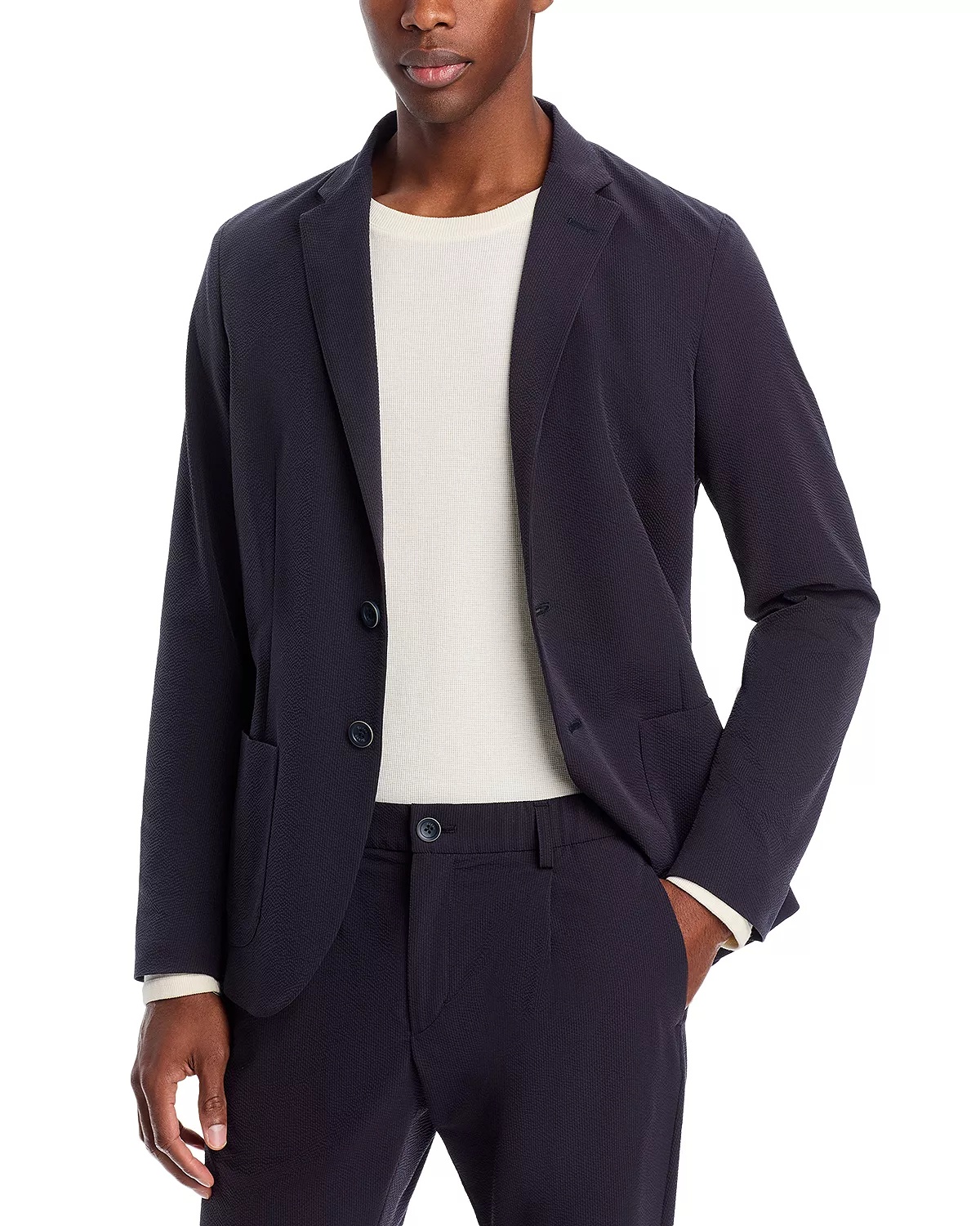 SIZE & FIT - Fits true to size, order your normal size - Designed for a regular fit - Model measurements: 6'2" height, 38" chest, 30" waist, 34" inseam, wearing a size IT 50 PRODUCT DETAILS - Notched lapel - Two-button closure - Two front patch pockets - No sleeve buttons - Double vent - Lined - Imported Web ID: 5431900 MATERIAL & CARE - Shell: 100% polyester; lining: 63% viscose/37% polyester - Dry clean