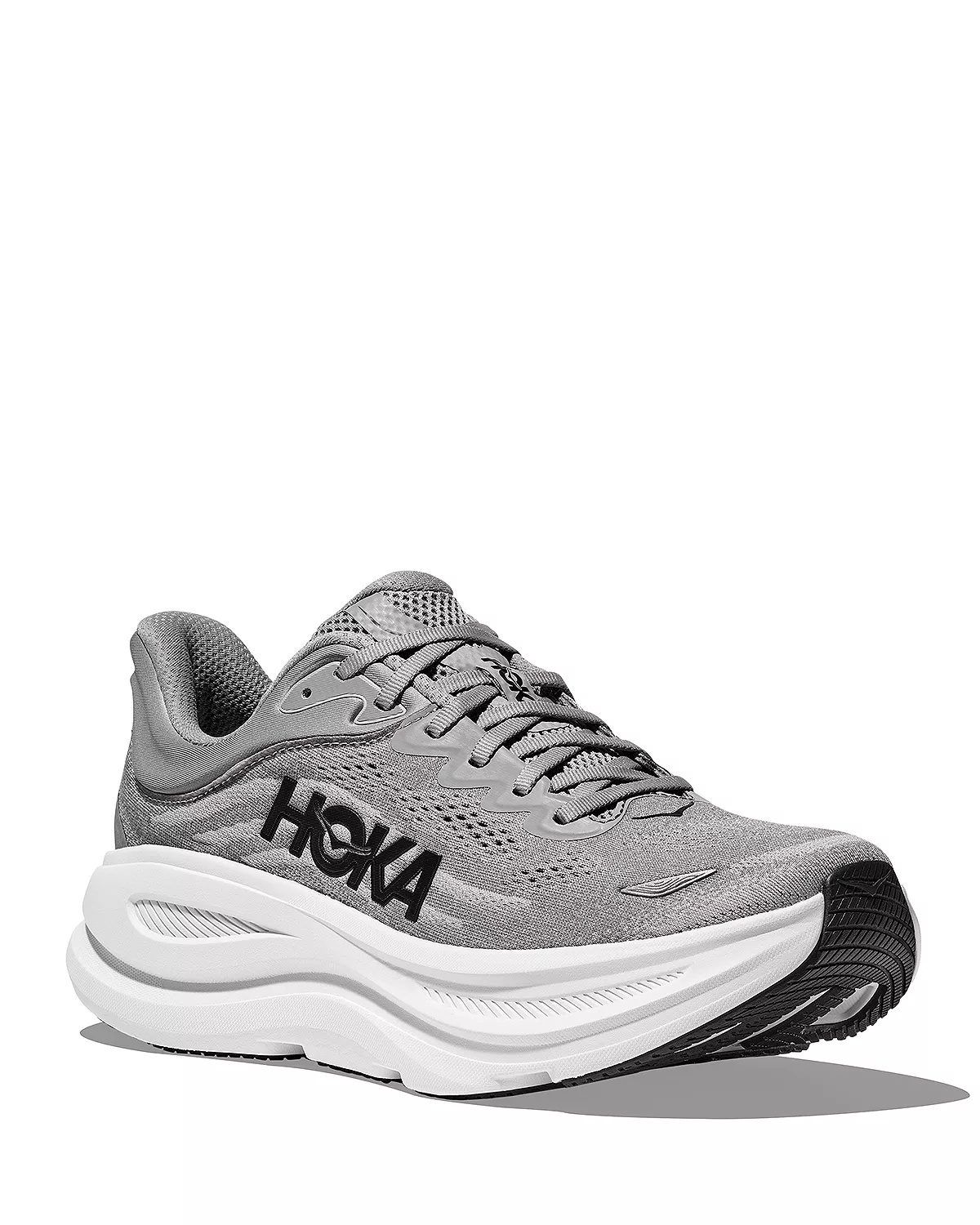 PRODUCT DETAILS - Fits true to size, order your normal size - Best for: Everyday runs - The ultra-cushioned game-changer, the Bondi 9 delivers peak plushness for everyday miles - Overhauled from top to bottom, HOKA increased the stack height and added a new premium foam midsole to deliver that soft, resilient ride that's become synonymous with the Bondi - Elevated with a 3D molded collar and structured knit upper with zonal breathability - Finished with Durabrasion rubber to combat high-wear zones - Lace up - Logo detailing at tongue, quarter, and footbed - Fabric upper and lining, rubber/EVA sole - Imported Web ID: 5454472