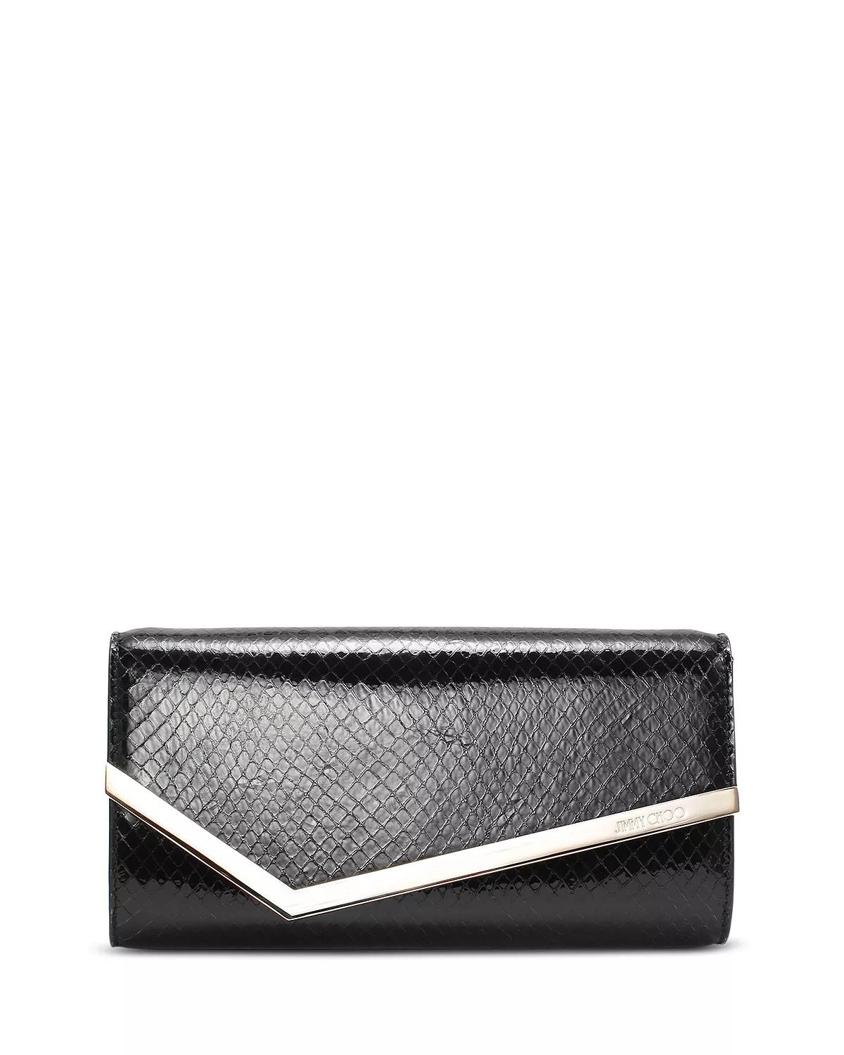 SIZE & FIT - Established in 1996, Jimmy Choo is a global luxury accessories brand. Celebrated for its confident style and craftmanship, the house is synonymous with design expertise and the art of celebrity dressing. - Headquartered in London and helmed by creative director Sandra Choi, the brand is a global powerhouse defined by glamour, optimism and joy. PRODUCT DETAILS - Removable chain crossbody strap, 23.6" drop - Dimensions: 8.7"W x 1.2"D x 4.7"H - Flap with magnetic closure - One interior zip pocket & seven card slots - Snake-embossed leather finish - Lined - Main: leather; lining: 100% viscose - Made in Italy Web ID: 5535289