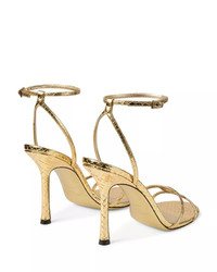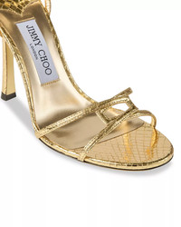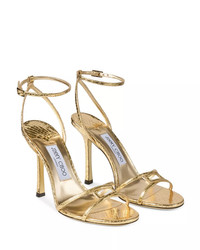 SIZE & FIT - Established in 1996, Jimmy Choo is a global luxury accessories brand. Celebrated for its confident style and craftmanship, the house is synonymous with design expertise and the art of celebrity dressing. - Headquartered in London and helmed by creative director Sandra Choi, the brand is a global powerhouse defined by glamour, optimism and joy. PRODUCT DETAILS - Runs small, order a half up - Open toe - Adjustable buckle ankle strap - 3.94" heel height - Leather upper, lining, and sole - Made in Italy Web ID: 5532641